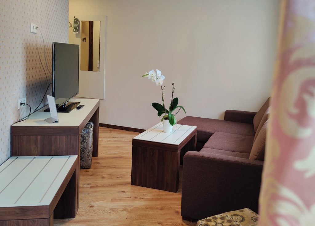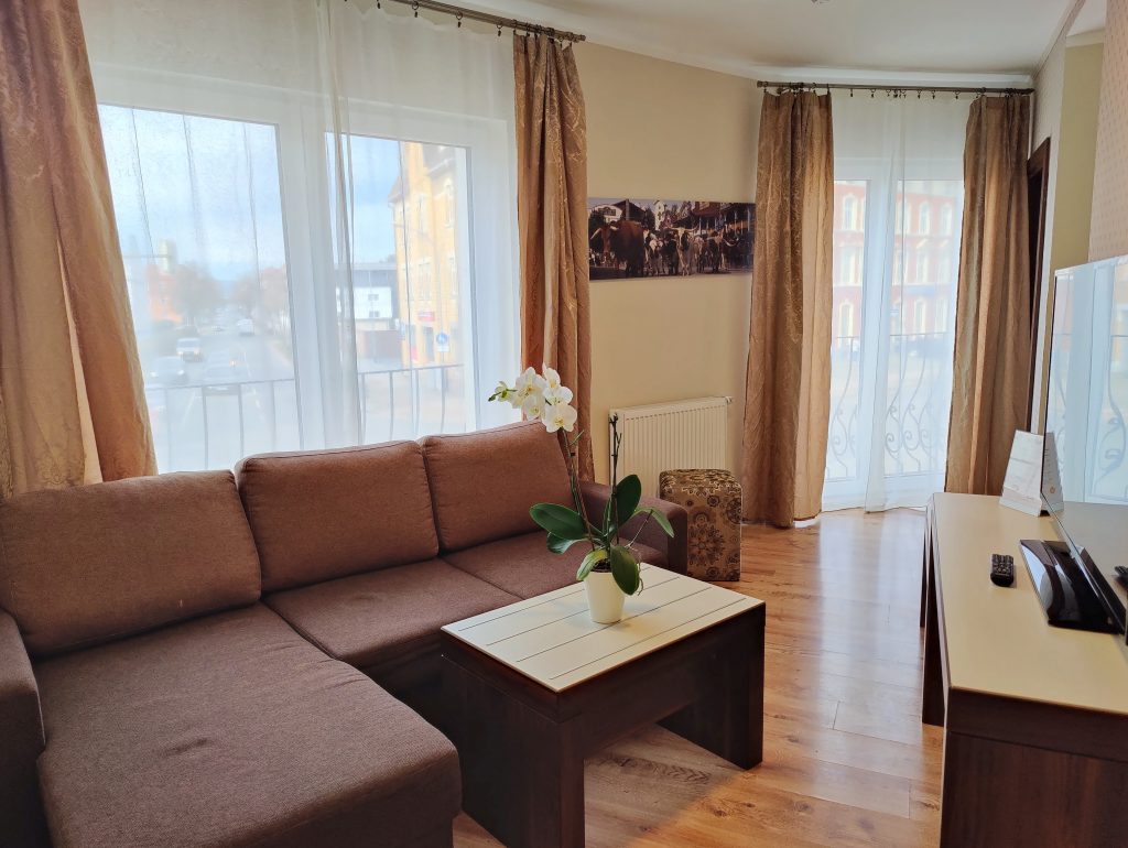 - In dieser 40qm großen Suite mit bequemem 1,80m Queensize-Bett können Sie sich in Ruhe allein oder zu zweit vom Alltagsstress erholen. Neben dem Schlafraum haben Sie einen großzügigen Aufenthaltsbereich mit ausziehbarer Schlafcouch und einer kleinen Küchenecke zu Ihrer Verfügung. Diese Suite ist mit einem großzügigen Badezimmer, mit Badewanne, Dusche und WC ausgestattet. Wie alle Zimmer in unserem Haus haben Sie auch hier Kabel-TV. WLAN ist in der Suite kostenfrei verfügbar. Täglich wird die Wäsche gewechselt und die Suite gereinigt.